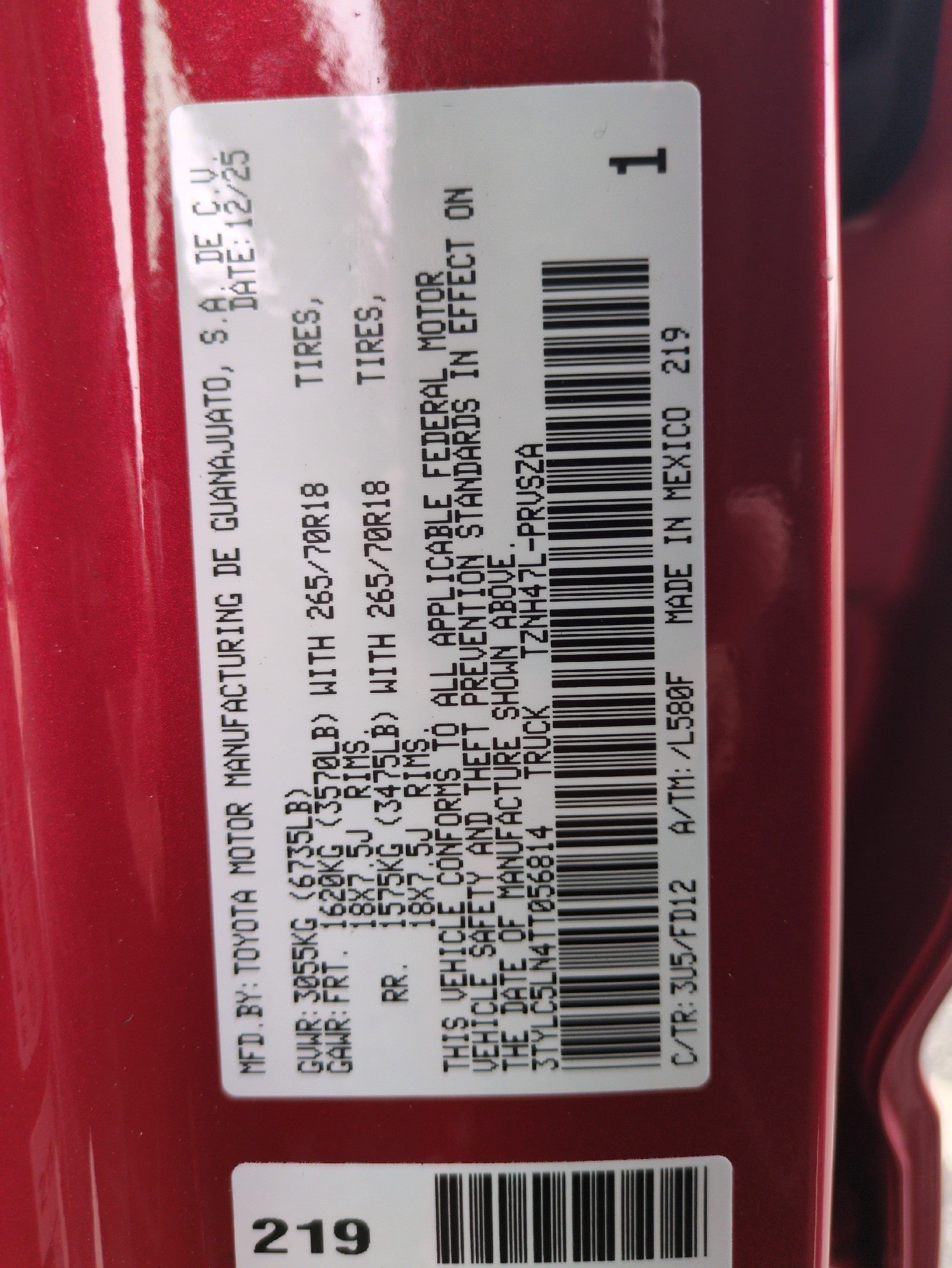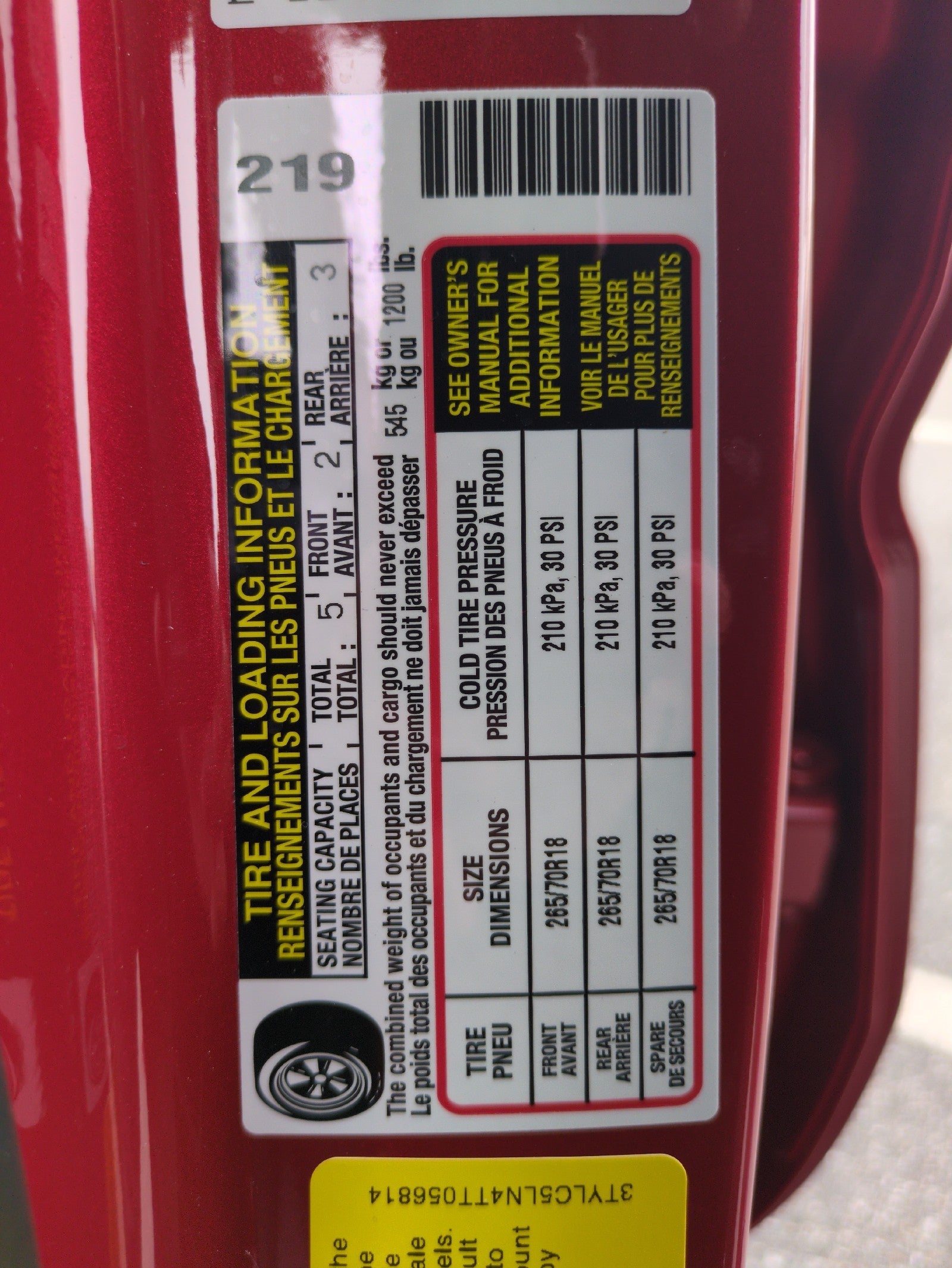- Front Tire Size: P265/70TR18