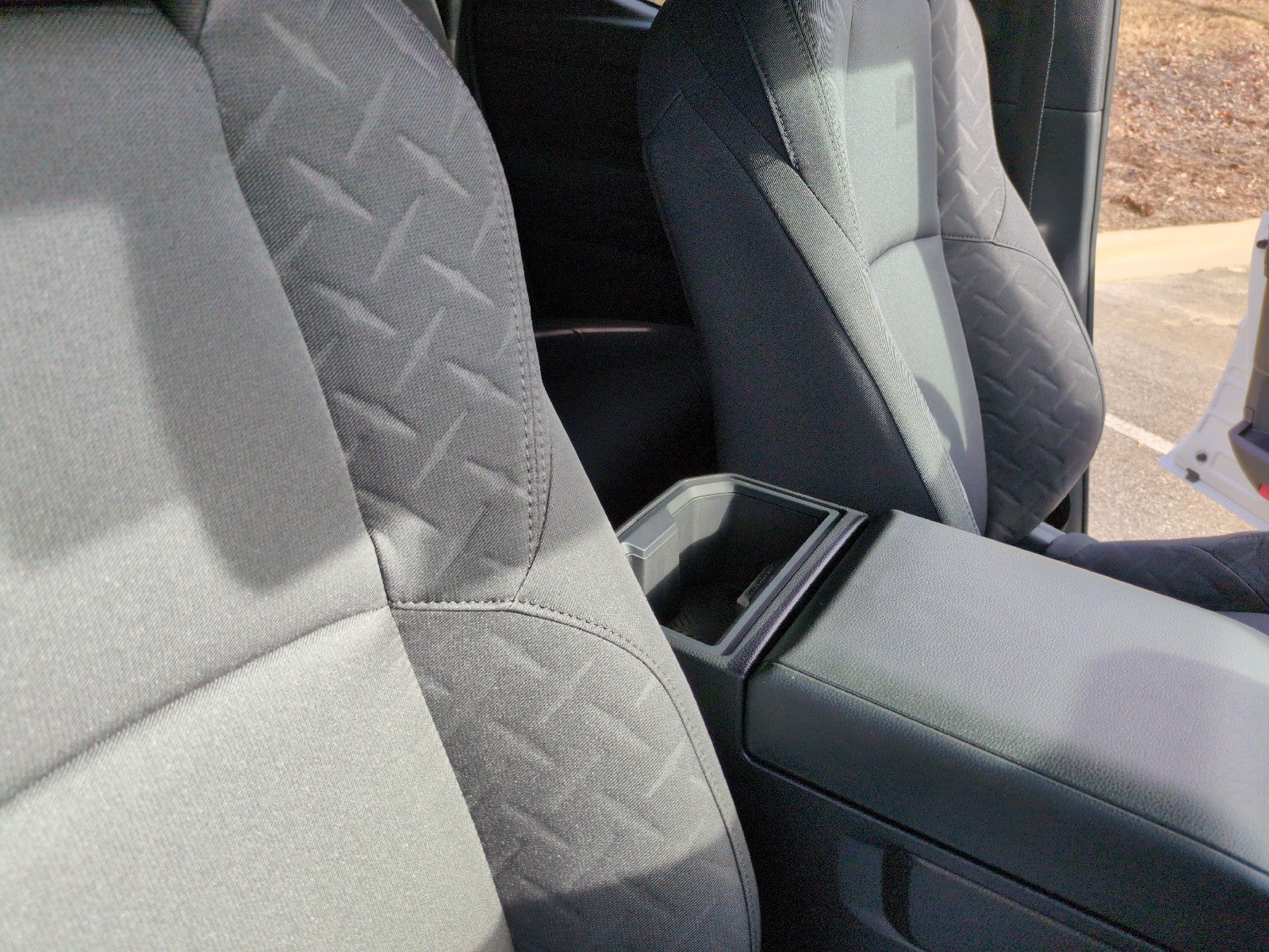 - Fabric-trimmed seats; 6-way manually adjustable driver and front passenger seats with 2-way power-adjustable lumbar support on driver's seat only