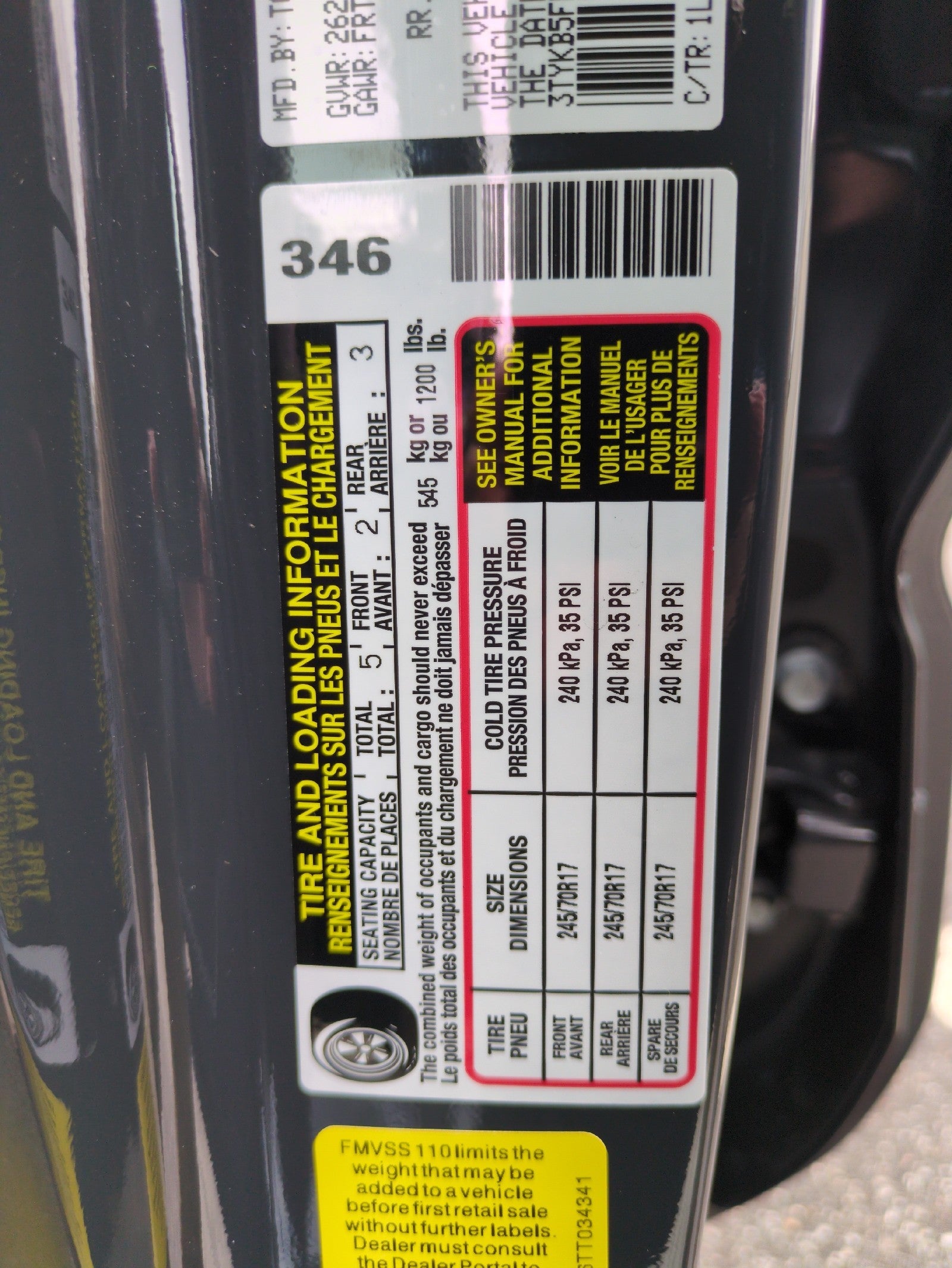 - Front Tire Size: P245/70TR17
