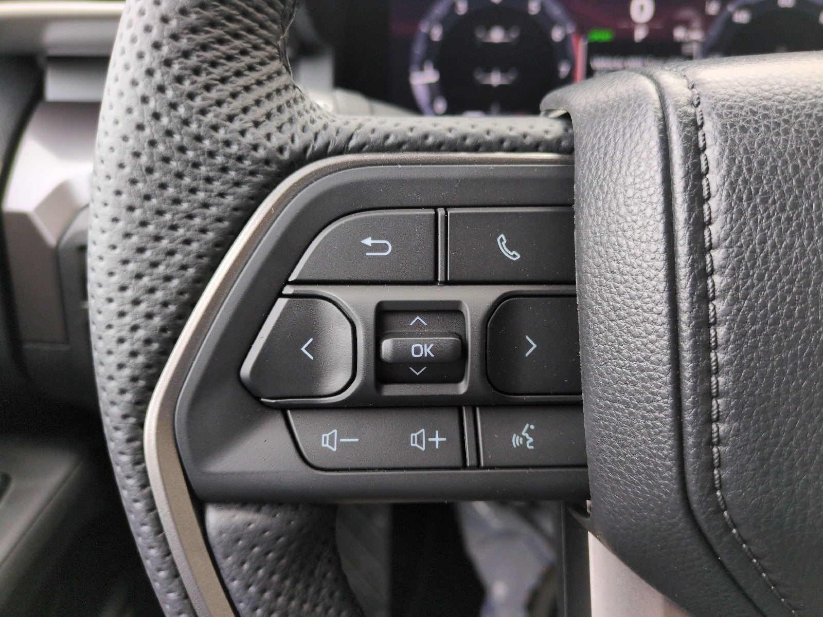 - Leather-trimmed manual tilt/telescopic steering wheel with phone, audio, display/infotainment, and Driver Assist controls