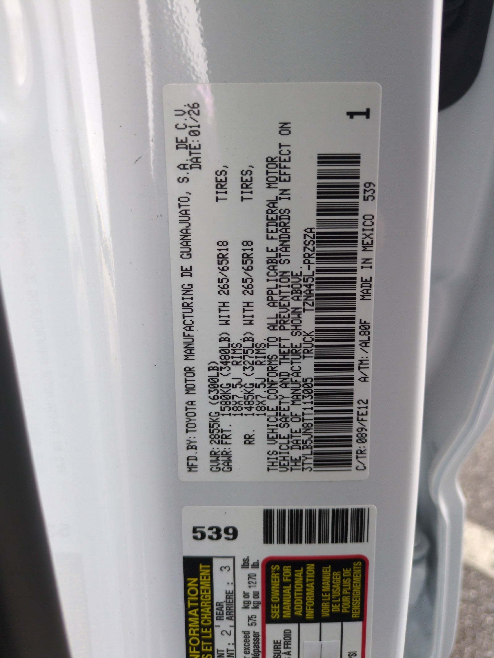 - Vehicle Name: Toyota Tacoma 4WD