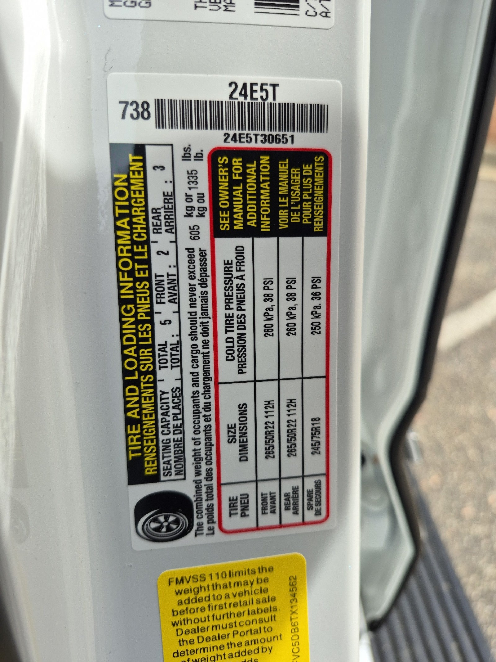- Front Tire Size: P265/50HR22